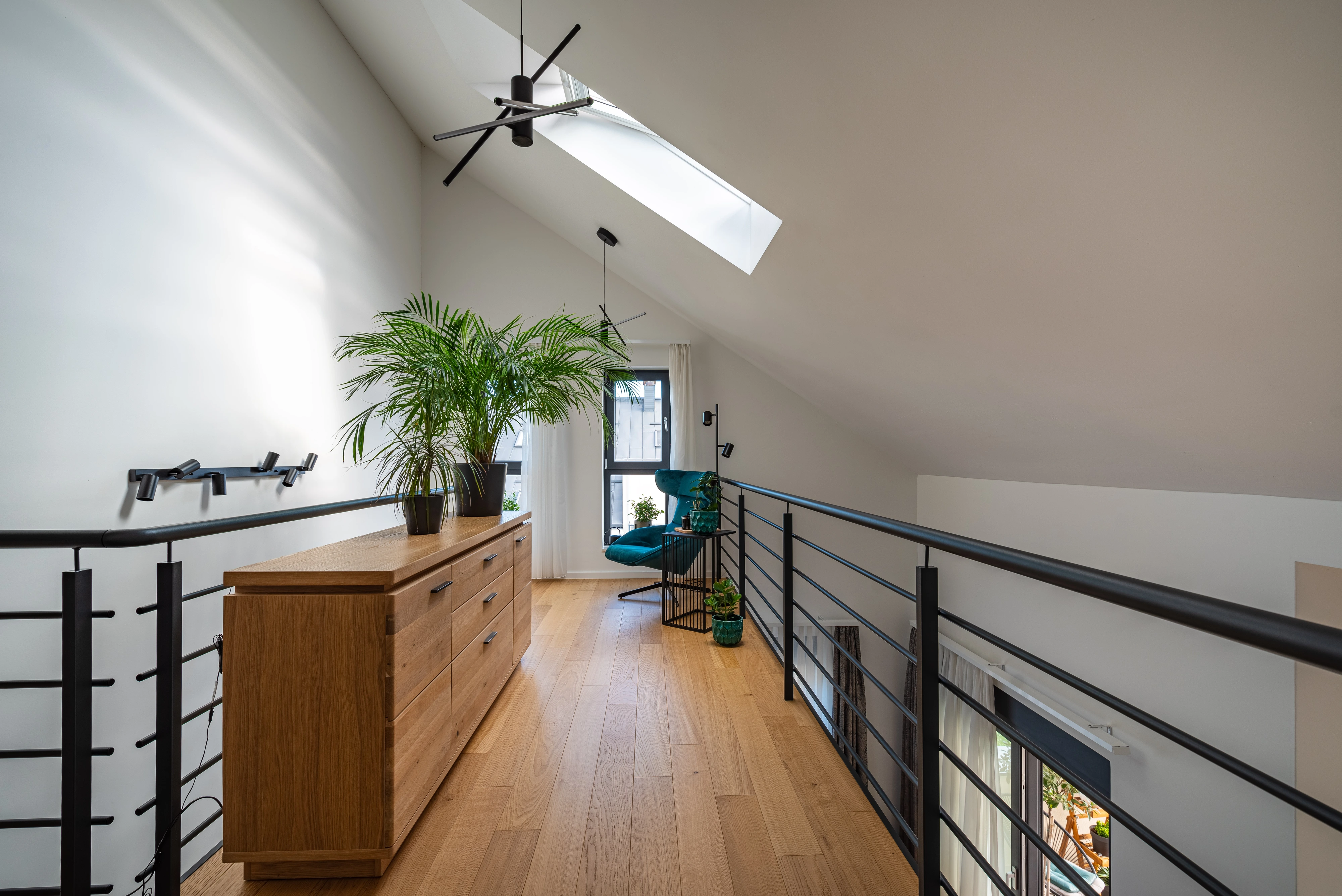Ne dovolite, da hodnik in stopnišče ostaneta v senci. Dnevna svetloba pomaga, da stenske galerije zasijejo, medtem ko majhna stopnišča in hodniki delujejo večji in svetlejši. Postavitev strešnega okna nad stopnišče poskrbi za učinek zračne linije in napolni vaš dom s svežim zrakom.