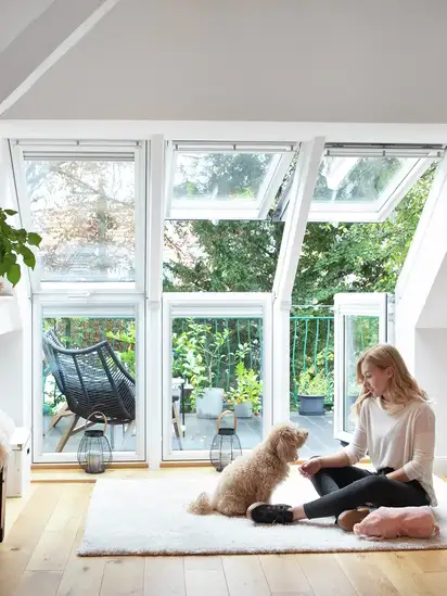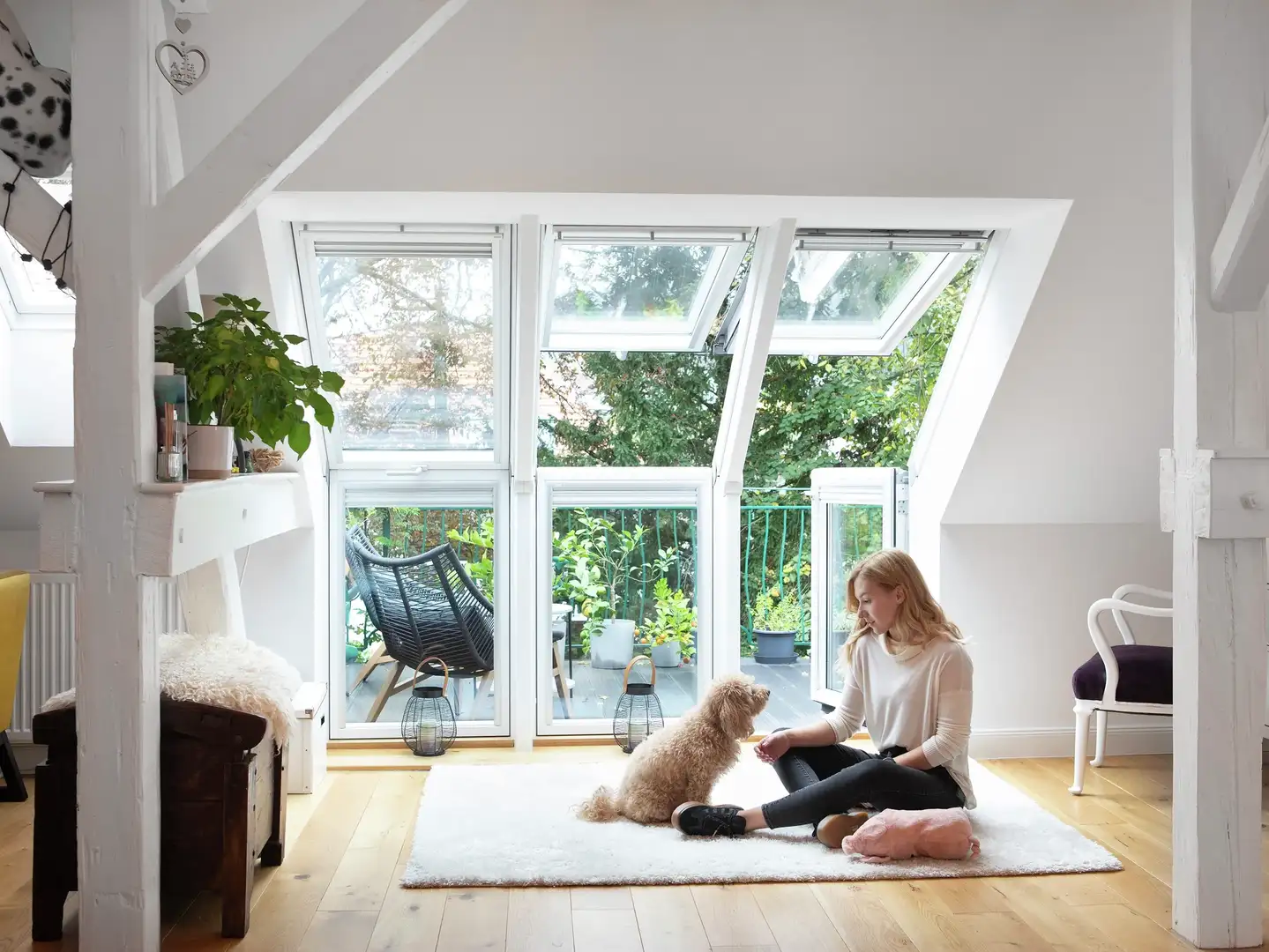 "Vedela sem, da si v stanovanju želim veliko dnevne svetlobe, in upala, da bomo lahko imeli tudi strešno teraso. Pred izzivom smo se znašli, ker je vsaka klasična rešitev s teraso pomenila, da bi morali 'zamakniti streho' in zmanjšati notranji bivalni prostor. Ko sva s partnerjem že skoraj obupala, je moja mama odkrila odlično rešitev – Izhod na strešno teraso VELUX. Gre za izdelek, ki deluje kot kombinacija strešnega in vertikalnega okna, ki ga je mogoče odpreti za dostop do terase. Bila sva navdušena, saj nama je ta rešitev omogočila uporabo obstoječe strehe, to pa preobraziti v teraso, hkrati pa smo lahko ohranili enako notranjo površino," je pojasnila Petra.